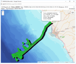 Localiza la embarcación cada 10 minutos durante sus movimientos, manteniendo el contacto permanentemente gracias a su cobertura de servicio satelital.